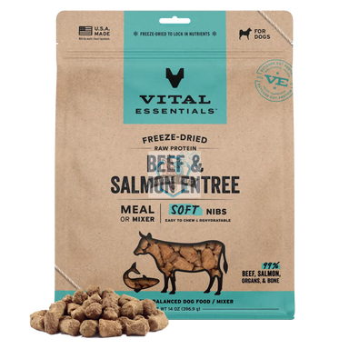 Vital Essentials Freeze Dried Soft Nibs for Dogs (Beef & Salmon)Give your dog the best of land and sea with our freeze-dried raw Beef & Sal...