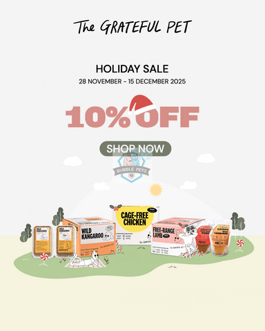 PROMO 10% OFF The Grateful Pet Dog Frozen Food Get 10% OFF Dog & Cat range (Cooked or Raw) Valid from 28 Nov to 15 Dec 2025 For product and i...